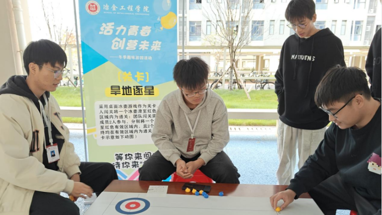 冶金工程学院学生会、研究生会通过深入调研,充分了解广大同学课余生活所需,与各班级班长认真商议,全流程自主设计"活力青春 创营未来"冬季趣味游园活动,于11月23日下午在三江校区(西园)4栋“一站式”学生社区成功举办。
